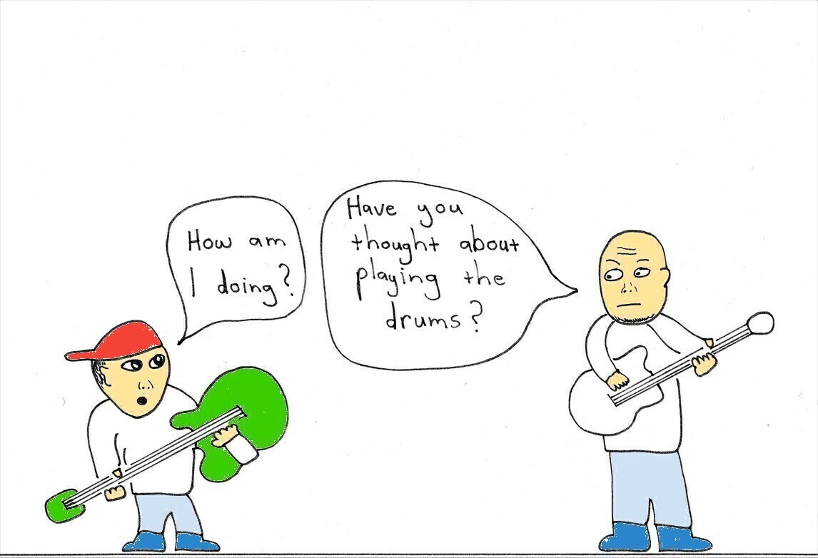 I once logged on to an online lesson where the student's webcam was giving me a view of their ceiling. This would have been great if I was a builder giving them advice on renovating their home but as a drum teacher, it wasn't helpful at all.
